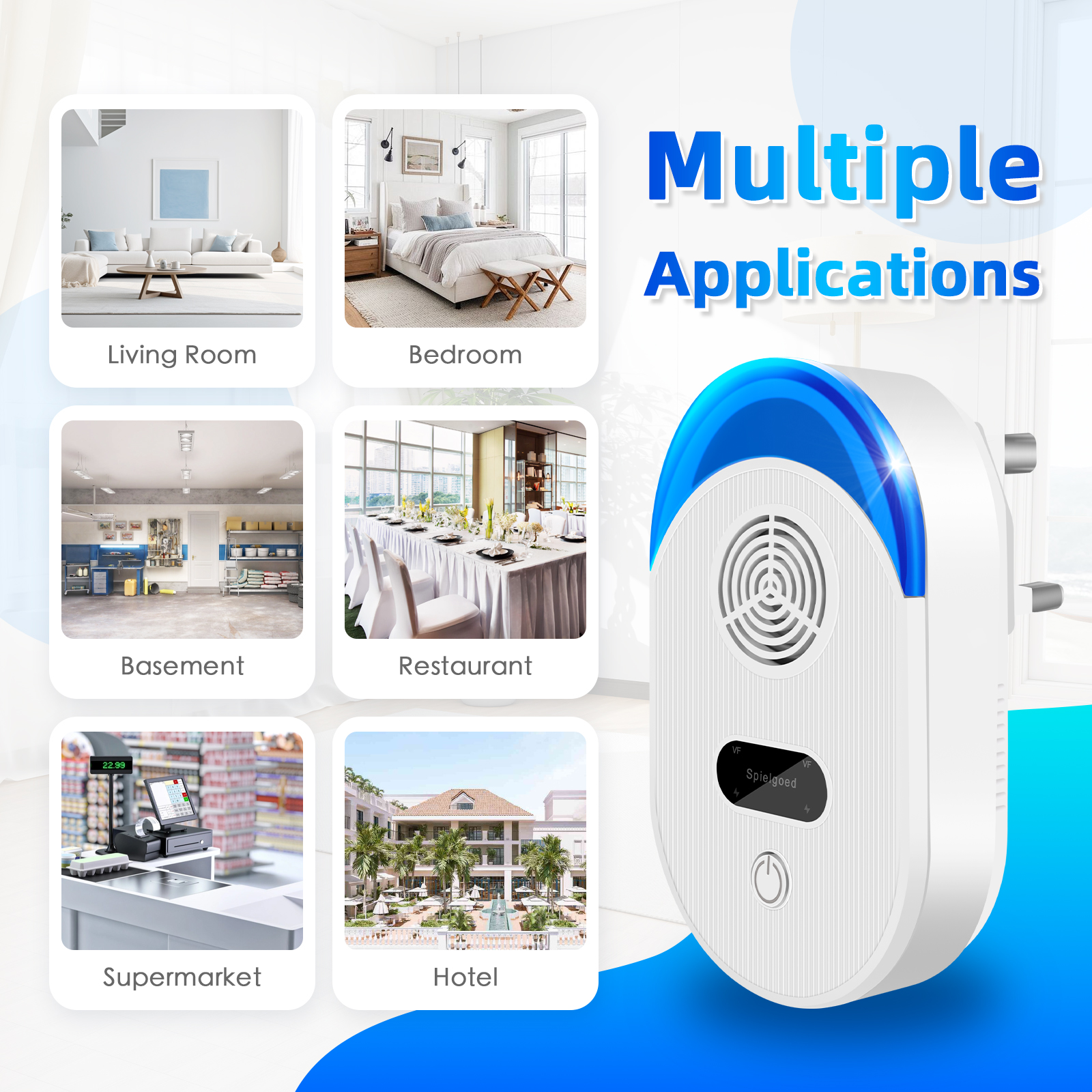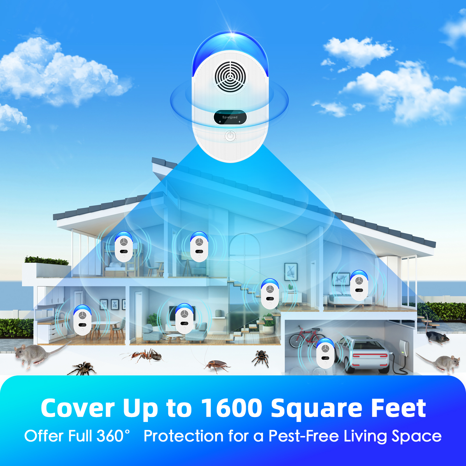 - 【Wide Coverage Ultrasonic Pest Repeller】Our ultrasonic pest repeller provides effective coverage of up to 1600 square feet, ensuring comprehensive protection for homes, offices, warehouses, and more. Equipped with advanced 3D surround dual speakers, it delivers 360° ultrasonic waves, driving pests away from every corner. For optimal results, use one device per room, as ultrasonic waves cannot pass through walls or solid objects. Ideal for a variety of indoor spaces, including homes, garages, restaurants, and hotels