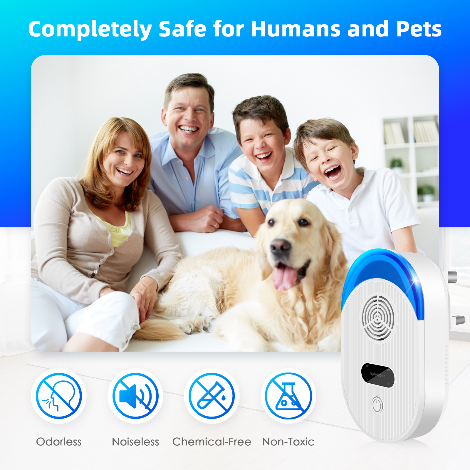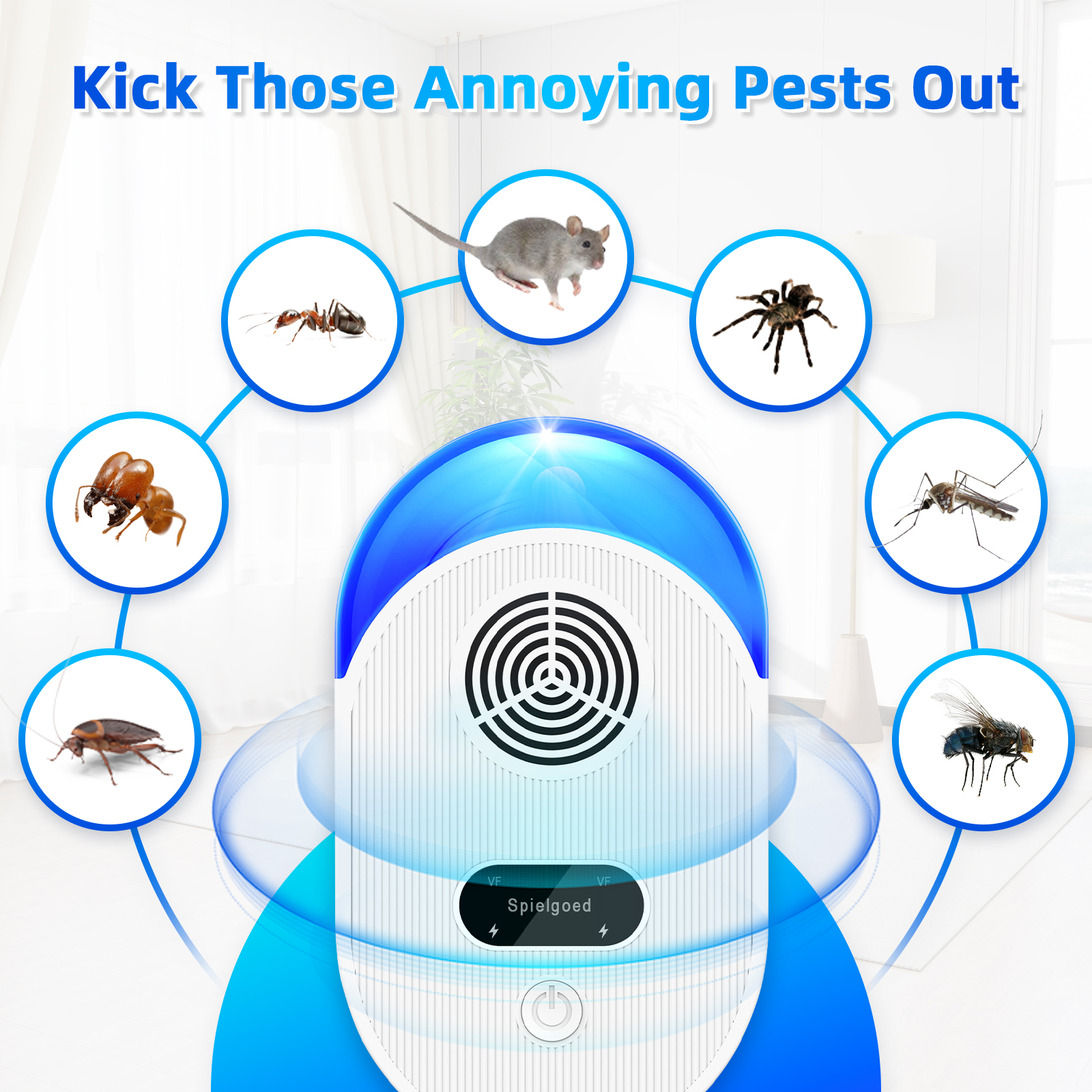 - 【100% Safe and Eco-Friendly Pest Repeller】Our ultrasonic pest repeller is crafted with non-toxic, flame-retardant ABS materials, ensuring complete safety for children, pets, and the environment. It emits chemical-free, odorless ultrasonic waves to repel pests like mice, mosquitoes, ants, and spiders without using harmful poisons or traps. Ideal for homes with kids and pets, it provides effective and sustainable pest control without compromising safety