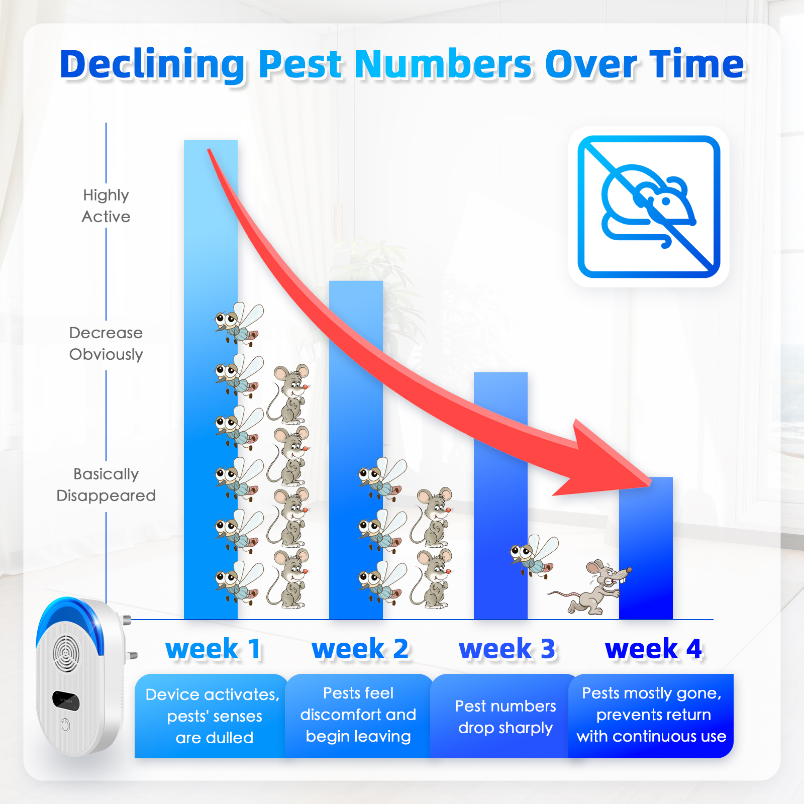 - 【Customer Satisfaction Guarantee】Our ultrasonic pest repellent may take 3–4 weeks to show noticeable results. If you have any questions or concerns during use, please reach out to us. We are committed to providing exceptional customer service and ensuring your satisfaction with our superior pest control solution